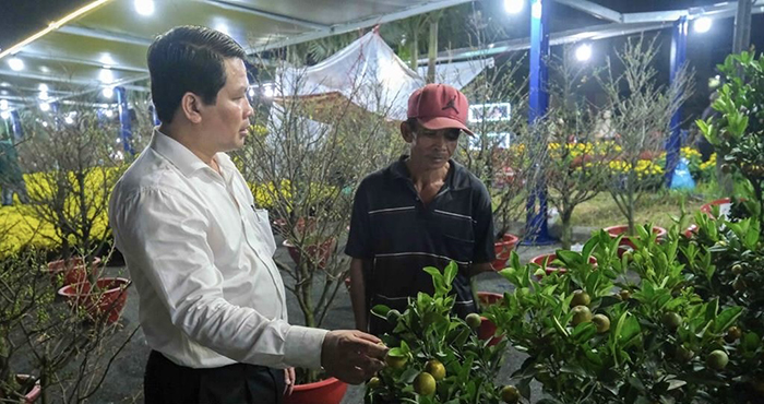 Giám đốc Sở Công thương TP.Cần Thơ Hà Vũ Sơn thăm hỏi tiểu thương tại chợ hoa xuân Bính Ngọ ở Quảng trường Tây Đô