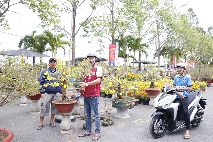 Do được miễn các chi phí để kinh doanh, các loại hoa kiểng tại chợ xuân Quảng trường Tây Đô có giá bán thấp hơn so với mặt bằng chung. Các chậu hoa mai mini, tuỳ lớn nhỏ và thế cây, có giá từ 1 triệu đồng trở xuống; cặp cúc mâm xôi truyền thống giá 400.000 đồng. Thọ ban mai và thọ thường; hoa và ớt kiểng… tùy chậu bự, trung bình hoặc vừa, có giá từ 150.000 đồng đến 250.000/cặp… Anh Chín Tèo, ở TP.Cần Thơ, hơn 20 năm làm nghề kinh doanh hoa các loại, cho biết, anh lấy hoa từ Chợ Lách, Bến Tre mang về Cần Thơ bán: “Năm nay giá lấy hoa cao hơn mọi năm nhưng bán như Tết năm trước; có loại còn thấp hơn. Cũng nhờ Sở Công thương miễn chi phí các thứ tụi tôi kinh doanh mới có lãi chút đỉnh. Chớ nếu thuê mặt bằng thì giá thấp nhất cũng 5 triệu đồng/lô, rồi tiền điện, nước, tiền vệ sinh môi trường… mọi chi phí dồn lại khiến mình bắt buộc phải tăng giá bán, cũng khó cho nhiều bà con khi muốn có cặp hoa để chưng khi Tết đến xuân về” – anh Chín bộc bạch.