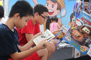 Các em thiếu nhi say mê đọc truyện tranh tại Lễ hội truyện tranh hoạt hình Comic Con 2014
