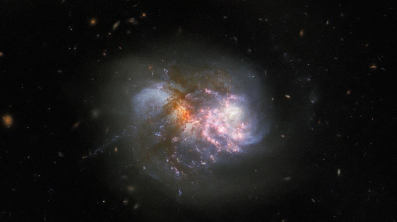 Với sự hỗ trợ của kính Hubble, các nhà thiên văn học đã chụp được ảnh một sự kiện thót tim đang xảy ra trong phạm vi hệ thống thiên hà IC 1623: hai thiên hà đang kết hợp ở giai đoạn cuối cùng.