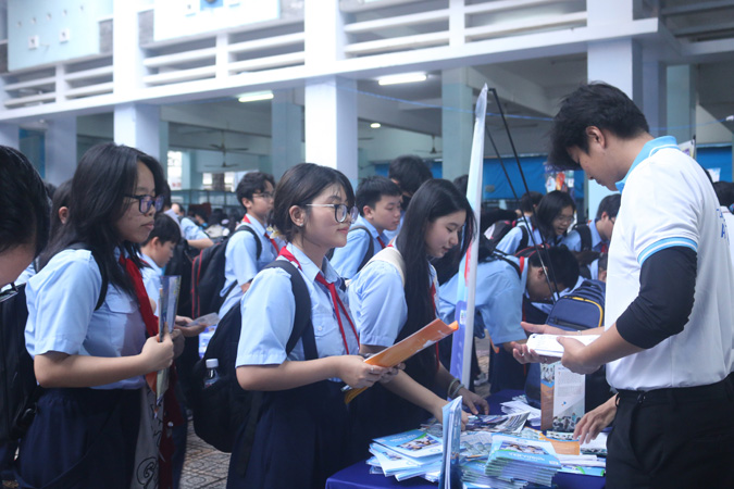 Các em học sinh lớp 9 tìm hiểu chương trình đào tạo của các trường