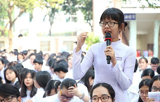 Học sinh Trường THPT Nguyễn Hữu Huân đặt câu hỏi cho ban tư vấn