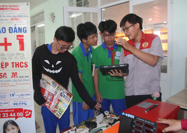 Các em học sinh tìm hiểu ngành nghề đào tạo của Trường CĐ Viễn Đông