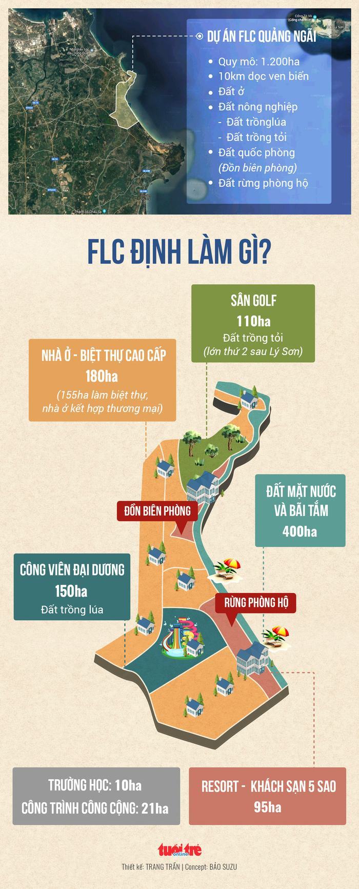 Ngoài ra, dự án của FLC cũng chồng lấn với quy hoạch khoáng sản, quy hoạch xây dựng Khu kinh tế Dung Quất và các vị trí ranh giới quy hoạch đất quốc phòng do Bộ đội biên phòng Quảng Ngãi quản lý.