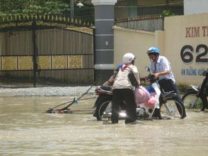 Cần giải quyết triệt để tình trạng đường ngập úng trước mùa mưa bão. Trong ảnh, đường An Dương Vương (Q.8) nắng mưa đều ngập |