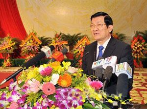 Chủ tịch nước Trương Tấn Sang phát biểu tại buổi lễ. Ảnh: I.T |