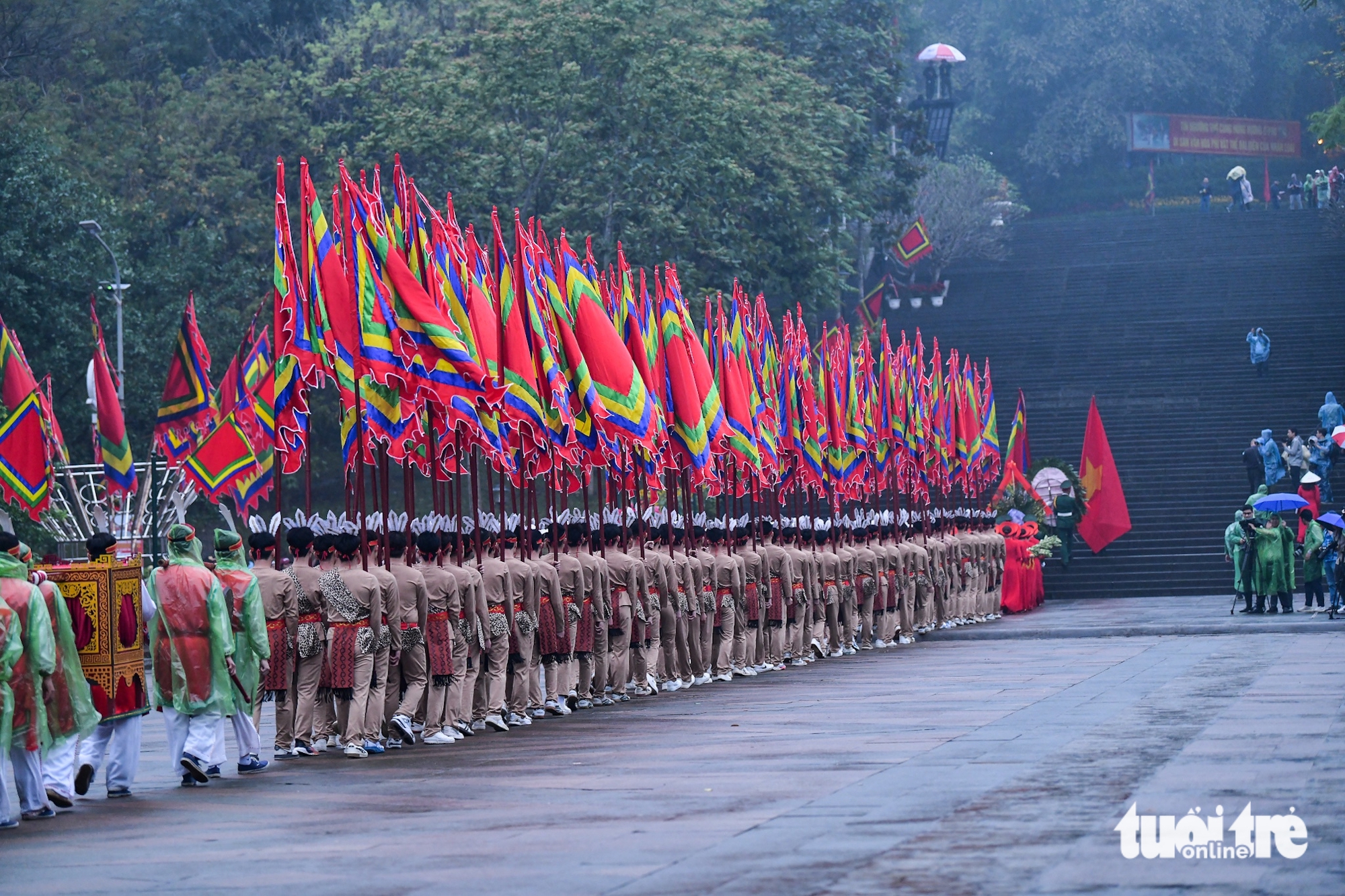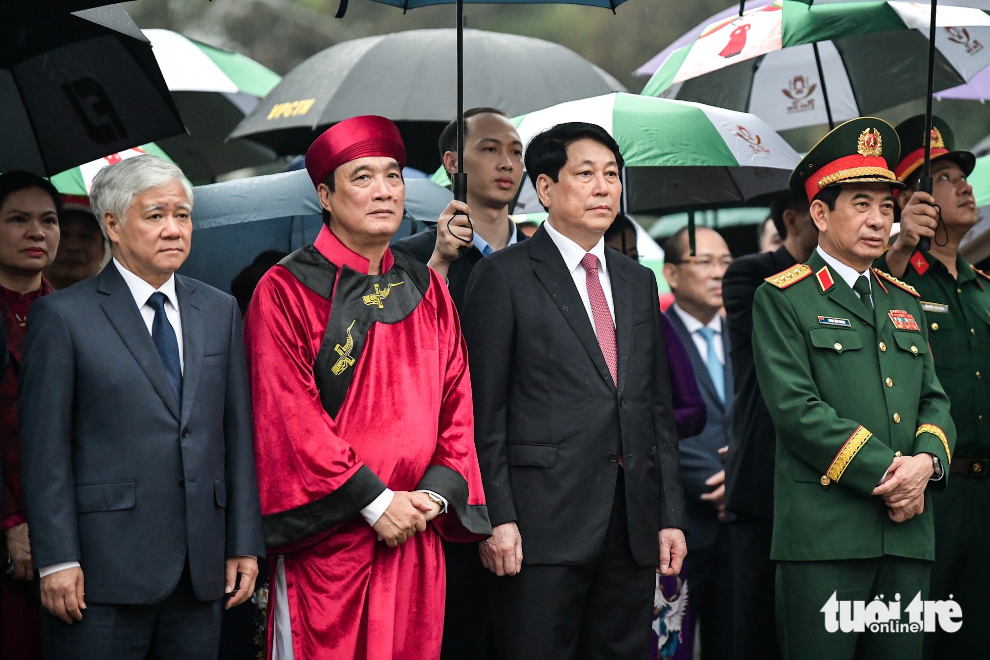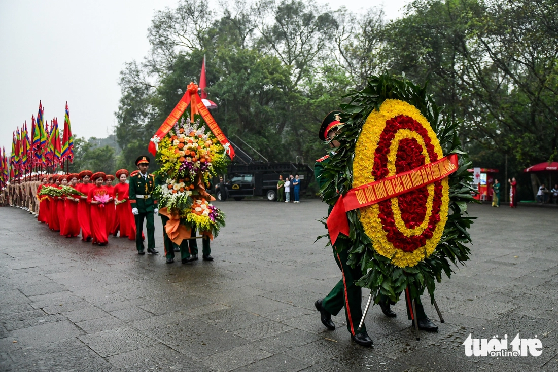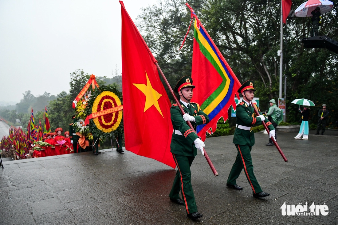 Ông Bùi Văn Quang – chủ tịch UBND tỉnh Phú Thọ – làm chủ lễ. Đoàn hành lễ trong tiết trời mưa nhẹ khiến không khí buổi lễ dâng hương thêm phần linh thiêng.