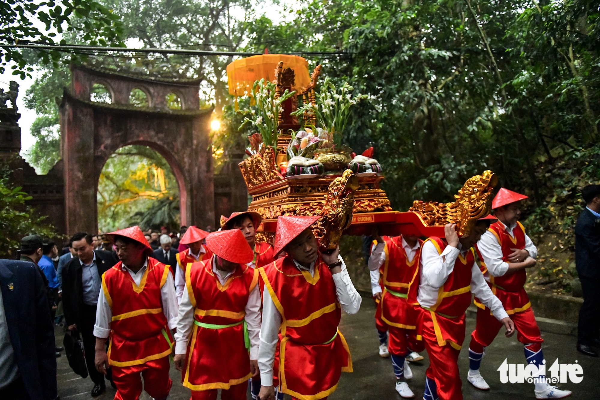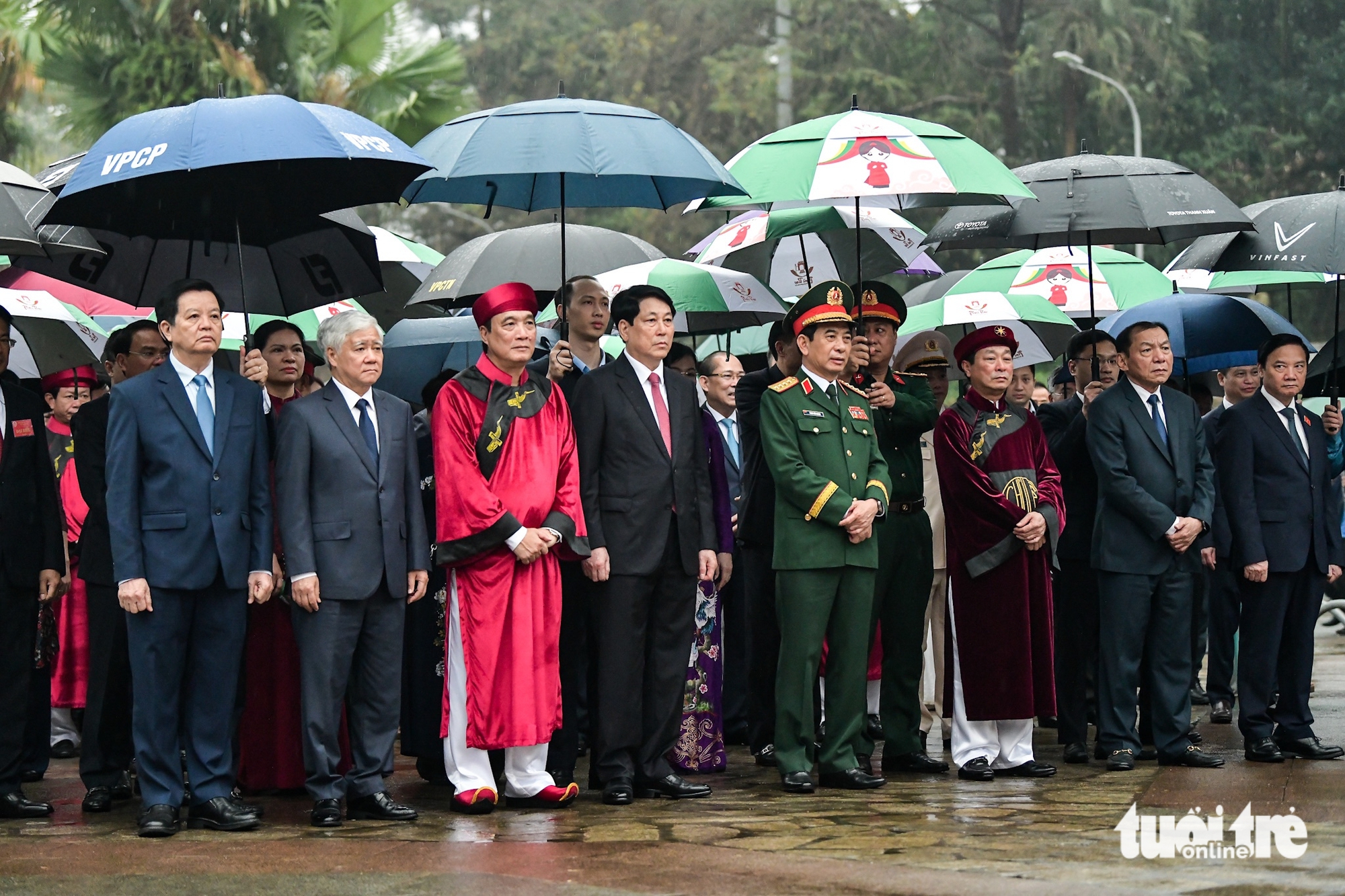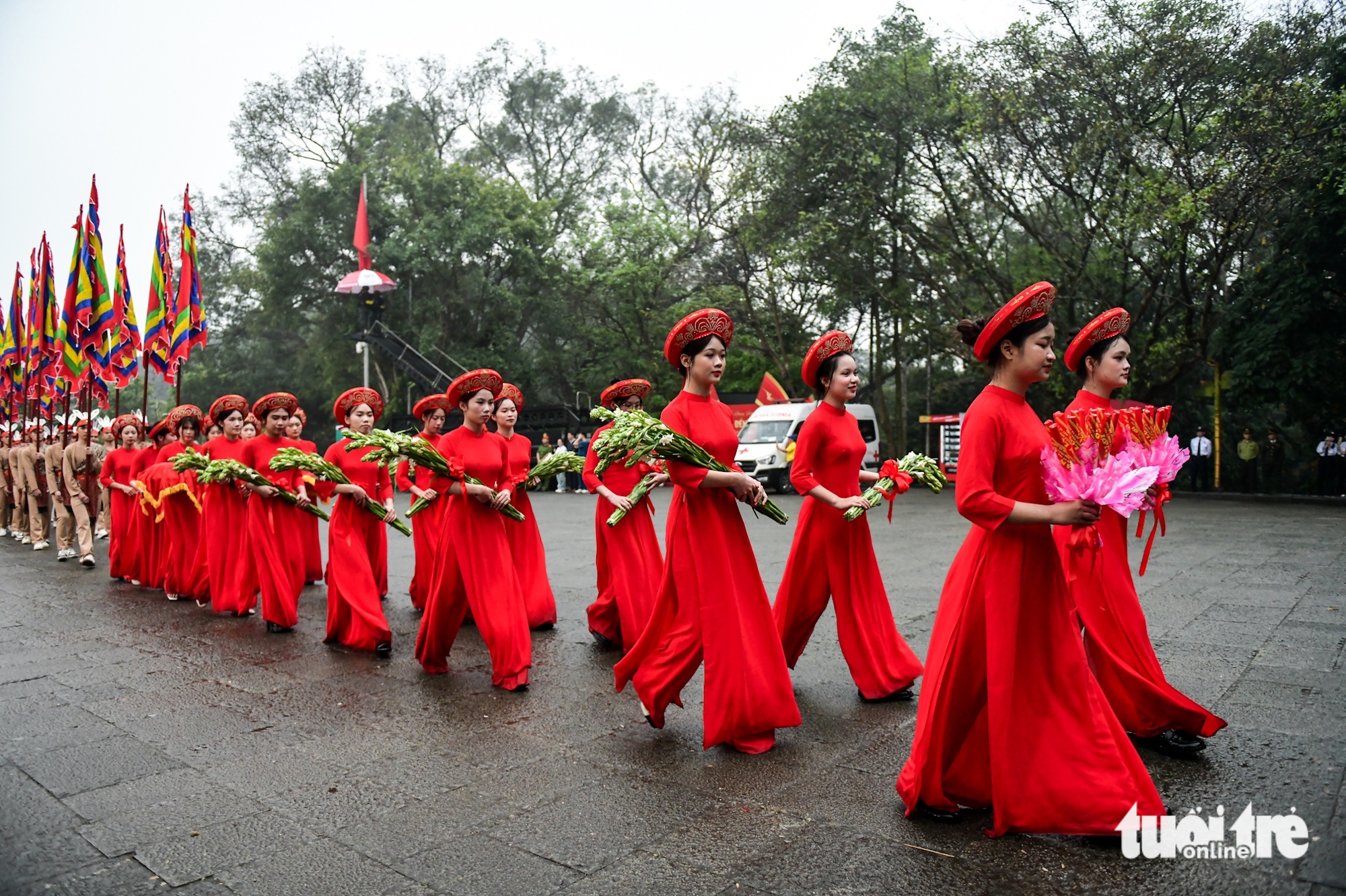 Ông Bùi Văn Quang – chủ tịch UBND tỉnh Phú Thọ – làm chủ lễ. Đoàn hành lễ trong tiết trời mưa nhẹ khiến không khí buổi lễ dâng hương thêm phần linh thiêng.