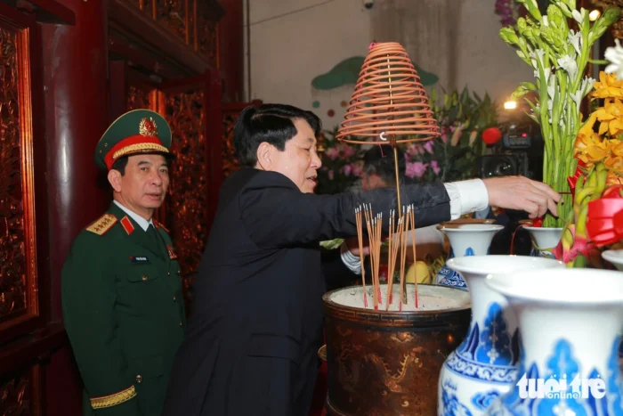 Cùng dâng hương Quốc Tổ Hùng Vương với Chủ tịch nước Lương Cường còn có Đại tướng Phan Văn Giang – ủy viên Bộ Chính trị, bộ trưởng Bộ Quốc phòng; ông Đỗ Văn Chiến – ủy viên Bộ Chính trị, chủ tịch Ủy ban Trung ương Mặt trận Tổ quốc Việt Nam;