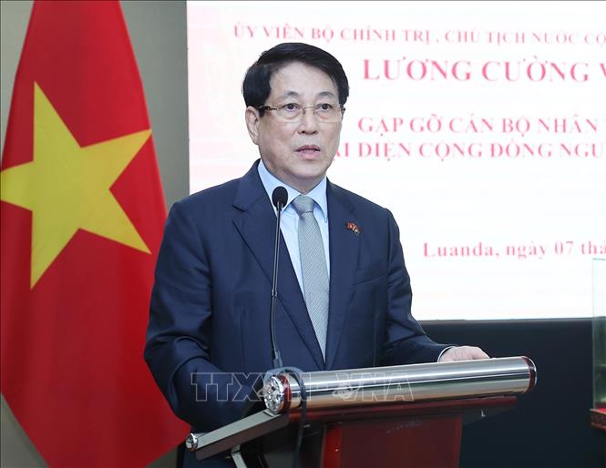 Tối 7-8 theo giờ địa phương, nhân chuyến thăm cấp nhà nước Cộng hòa Angola, Chủ tịch nước Lương Cường và phu nhân cùng đoàn đại biểu cấp cao Việt Nam đã gặp mặt thân mật với cán bộ, nhân viên Đại sứ quán và đại diện cộng đồng người Việt Nam tại Angola.