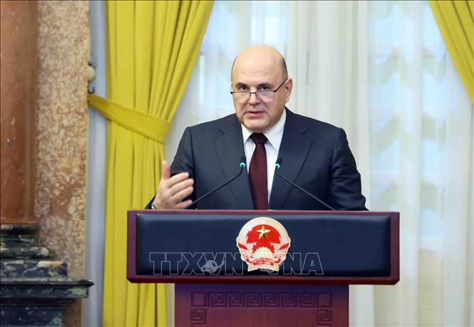 Thủ tướng Liên bang Nga Mikhail Mishustin phát biểu. Ảnh: Phạm Kiên/TTXVN