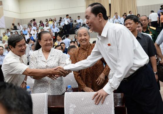 Ch tch nưc Trn Đi Quang tiếp xúc c tri TP.HCM. Ảnh: PVTT
