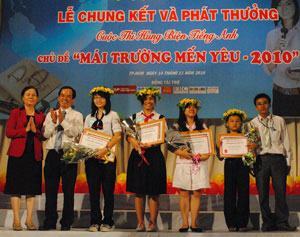 Tuần qua, lễ chung kết và trao thưởng cuộc thi Hùng biện tiếng Anh với chủ đề “Mái trường mến yêu – 2010” do Sở GD-ĐT TP.HCM và Báo Giáo Dục phối hợp tổ chức đã diễn ra sôi nổi tại Nhà Văn hóa Thanh niên – TP.HCM. Trải qua hai vòng thi sơ khảo và chung khảo, 21 thí sinh xuất sắc nhất đã vượt qua hơn 12.000 thí sinh từ tiểu học đến đại học để bước vào vòng chung kết.