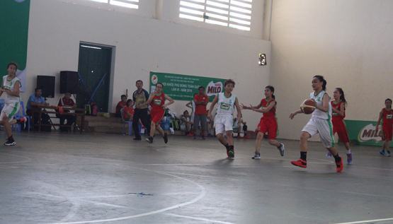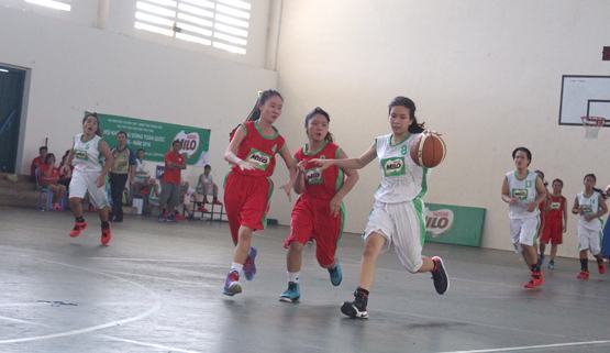 | Các VĐV bóng rổ nữ thực hiện những pha bóng chính xác trước đội Cần Thơ |