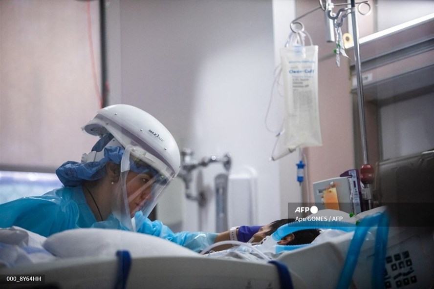 Một y tá mặc đồ bảo hộ khi chăm sóc bệnh nhân COVID-19 tại Tarzana, California.