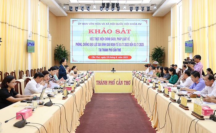 Chiều 19-8-2025, đoàn công tác Ủy ban Văn hóa và Xã hội của Quốc hội do bà Nguyễn Thị Kim Thúy – Phó Chủ nhiệm làm Trưởng đoàn, đã làm việc với UBND TP.Cần Thơ về việc thực hiện chính sách, pháp luật về phòng, chống bạo lực gia đình (PCBLGĐ), giai đoạn từ ngày 1-7-2023 đến ngày 1-7-2025.