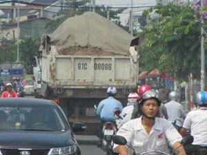 Xe quá tải, quá khổ đang lưu thông trên đường Kha Vạn Cân