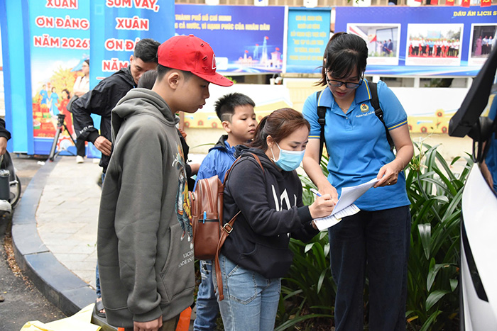 Cùng thời điểm này, tại Trung tâm Văn hóa Lao động Bình Dương và các điểm còn lại, “Chuyến xe công đoàn – Xuân năm 2026” cũng đưa hơn hàng ngàn người lao động về quê đón Tết.