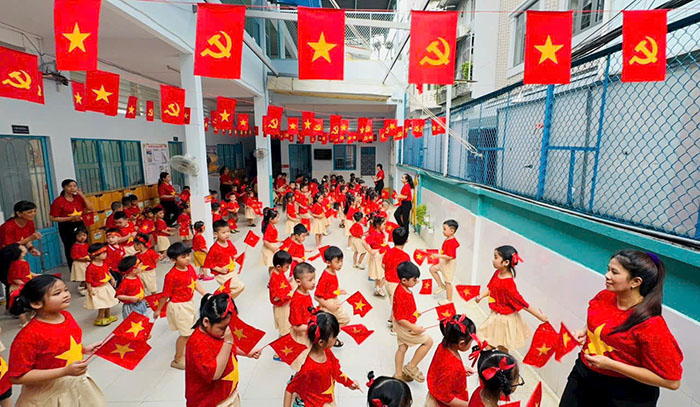 Bước chân đến bất cứ ngôi trường nào tại TP.HCM dịp này, lời bài hát “Mùa xuân trên TP.HCM” của nhạc sĩ Xuân Hồng lại như vang lên, rộn ràng, náo nức: “Ôi ta đi giữa rừng hoa, hay ta đi giữa rừng cờ”. Cùng chiêm ngưỡng những hình ảnh cờ đỏ sao vàng rực rỡ, đẹp đến nao lòng tại nhiều ngôi trường trên thành phố mến yêu…