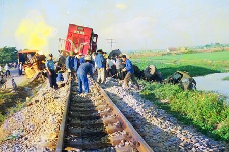 Một vụ ô tô va tàu hỏa trên địa bàn Nghệ An.