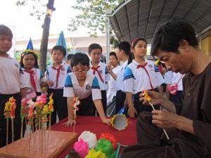 Nặn tò he tại Trường TH Nguyễn Đình Chiểu (Q. Bình Thạnh), đây là loại hình trò chơi dân gian khiến nhiều em tò mò, thích thú. |
