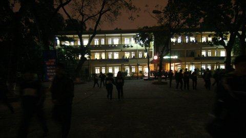| Học sinh Trường THPT Yên Hòa (Cầu Giấy) uể oải tan trường sau 19h. (Ảnh: Văn Chung) |