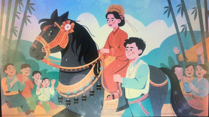 Cô gái cưỡi ngựa, chàng trai cầm dây cương trong bài hát “Lý ngựa ô” (dân ca Nam bộ)