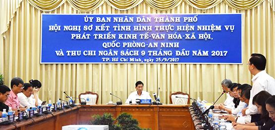 Sáng 25-9, UBND TP.HCM đã tổ chức Hội nghị sơ kết tình hình thực hiện nhiệm vụ phát triển kinh tế – văn hóa – xã hội, quốc phòng – an ninh và thu chi ngân sách 9 tháng đầu năm 2017. Phó Chủ tịch UBND TP Trần Vĩnh Tuyến chủ trì hội nghị.