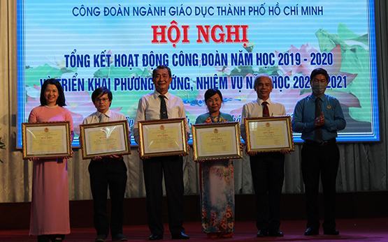 Đại diện Liên đoàn Lao động TP.HCM trao bằng khen cho các cá nhân, tập thể đạt thành tích xuất sắc trong năm học 2019-2020