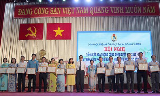 Trong phong trào thi đua, cuộc vận động và công tác thi đua, khen thưởng, Công đoàn ngành Giáo dục TP.HCM đẩy mạnh tuyên truyền chỉ thị 05-CT/TW của Bộ Chính trị về việc “Học tập và làm theo tư tưởng, đạo đức, phong cách Hồ Chí Minh” gắn với việc thực hiện thường xuyên nội dung “Mỗi thầy, cô giáo là một tấm gương đạo đức, tự học và sáng tạo”, “Dân chủ – Kỷ cương – Tình thương – Trách nhiệm” và phong trào “Đổi mới, sáng tạo trong dạy và học” cho đội ngũ CBNGNLĐ; tuyên truyền các hoạt động “Tuần lễ hưởng ứng học tập suốt đời” năm 2019; tuyên truyền bảo vệ môi trường, an toàn giao thông, người Việt Nam dùng hàng Việt Nam… Kết quả đã tuyên dương 134 cá nhân điển hình tiên tiến tại đơn vị; tuyên dương 44 tập thể và 61 cá nhân làm theo lời Bác, tuyên dương 91 “Gương sáng Đảng viên”; tuyên dương, tri ân 34 “Gia đình nhà giáo 3 thế hệ” có nhiều cống hiến cho sự nghiệp giáo dục. Ngoài ra, Công đoàn ngành Giáo dục TP.HCM còn phối hợp với Sở GD-ĐT TP xét và đề nghị Bộ GD-ĐT công nhận danh hiệu Nhà giáo ưu tú cho 17 cán bộ, giảng viên, giáo viên, trong đó có 13 cán bộ, giáo viên trực thuộc ngành GD-ĐT TP, 2 giảng viên đại học và 2 giáo viên trường trung cấp.