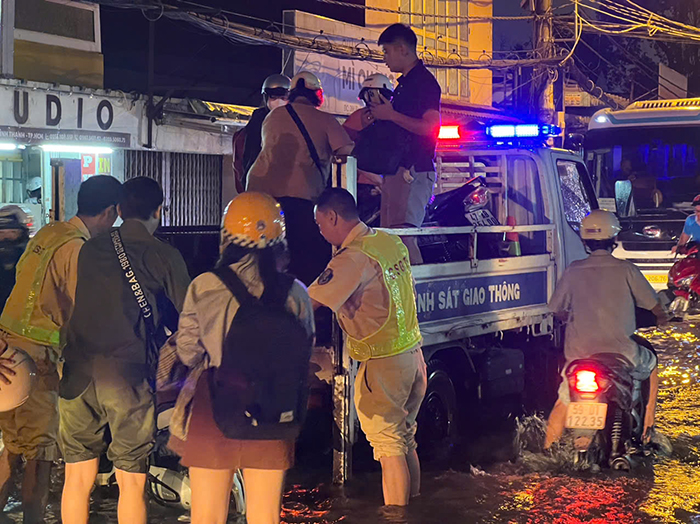 CSGT cũng phối hợp với Sở Xây dựng TP.HCM khảo sát, lắp đặt rào chắn và biển cảnh báo tại các đoạn đường ngập sâu, nguy hiểm; đồng thời kiểm tra hệ thống thoát nước, cống rãnh và các vị trí xung yếu để kịp thời xử lý, hạn chế ngập kéo dài và ùn tắc.