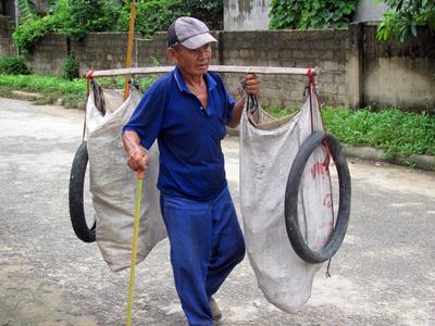 Sáng tinh mơ, khi ánh bình minh mới bắt đầu ló rạng, cũng là lúc xuất hiện hình ảnh một cụ già áo quần lem luốc, đôi chân trần sần sùi gánh hai bao tải chống gậy bước trên đường, nhặt nhạnh đủ thứ rác thải bị vứt bừa bãi giữa đường, bên hè phố, góc chợ, bến xe hay cổng các công sở.