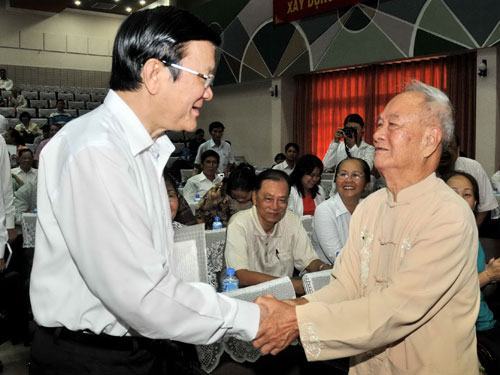 Sáng 23.6, Chủ tịch nước Trương Tấn Sang cùng tổ ĐBQH đơn vị số 1 đã có buổi tiếp xúc cử tri Q.4 (TP.HCM). Các vấn đề liên quan đến chủ quyền biển đảo; thất thoát tài sản ở các tổng công ty, tập đoàn nhà nước; những bất cập trong công tác thu hồi đất, đền bù, giải tỏa… được nhiều cử tri đặt ra.