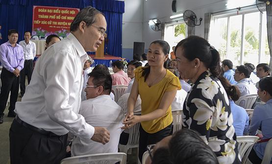 Trước bức xúc của cử tri Nhà Bè về quy hoạch treo, ngập nước, cầu đường hư hỏng, Bí thư Thành ủy TP.HCM Nguyễn Thiện Nhân cam kết sẽ trả lời và giải quyết dứt điểm trước 5-2018.