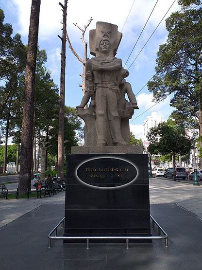 Tượng đài tưởng niệm Dân quân quận 5, tọa lạc trong không gian Công viên Văn Lang (P.9, Q.5, TP.HCM) từ lâu bị bong tróc rơi mất khá nhiều nét chữ, khiến không ít người “khó” nhận biết chính xác tên của tượng đài, mà còn tạo hình ảnh nhếch nhác, phản cảm…!