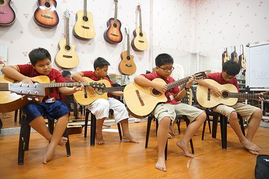 Các em HS say sưa trong tiết hc đàn guitar ti Nhà Thiếu nhi Q.Bình Thnh. Ảnh: T.Thương