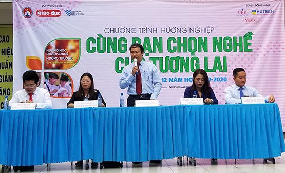 | Cuối tuần qua, chương trình hướng nghiệp “Cùng bạn chọn nghề cho tương lai” lần thứ 12 năm học 2019-2020 đã đồng loạt diễn ở nhiều trường trên địa bàn TP.HCM, gồm: THPT Thủ Đức (Q.Thủ Đức); THPT Phạm Văn Sáng, THPT Bà Điểm (huyện Hóc Môn); THPT Trường Chinh (Q.12); THPT Trần Hữu Trang (Q.5)… |