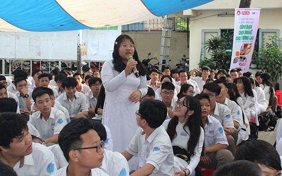 Tương tự, em Lê Như (lớp 12/1) băn khoăn: “Ngành quản trị marketing có giống với quản trị kinh doanh không?”. ThS. Nguyễn Ngọc Thạch (Phó Giám đốc Trung tâm Tư vấn Tuyển sinh, Trường ĐH Kinh tế – Tài chính TP.HCM) cho biết: Marketing là một ngành nhỏ của quản trị kinh doanh. Cả hai ngành này đều cần những người nhạy bén, năng động, nắm bắt được tâm lý của người tiêu dùng; đặc biệt là phải có tính sáng tạo để đáp ứng nhu cầu khách hàng. “Nếu muốn học ngành này, các em có thể học tại Trường ĐH Kinh tế – Tài chính TP.HCM, Trường ĐH Kinh tế TP.HCM, Trường ĐH Ngoại thương, cơ sở TP.HCM…”, ThS. Thạch hướng dẫn. Dù khá mới mẻ nhưng những năm gần đây ngành tổ chức sự kiện đã phát triển với tốc độ nhanh, nắm bắt được xu thế đó, em Nguyễn Tấn Thành (lớp 12/8) bày tỏ mong muốn được theo đuổi ngành này nhưng không biết cần tố chất gì? Để các em học sinh trong trường hiểu rõ, bà Nguyễn Thị Hoàng Ánh (Trưởng phòng Thông tin thị trường lao động, Trung tâm Dự báo nhu cầu nhân lực và Thông tin thị trường lao động TP.HCM) khẳng định đây là ngành học có cơ hội việc làm cao trong thời buổi hiện nay. Tuy nhiên, để có thể hoàn thành tốt công việc, người học phải nhạy bén, có khả năng giao tiếp tốt, biết lắng nghe và hiểu được tâm lý của đối tác. “Ngành này có thể học tại Trường ĐH KHXH-NV TP.HCM, Học viện Báo chí – Tuyên truyền, Trường CĐ Phát thanh – Truyền hình 2…”, bà Ánh chia sẻ.