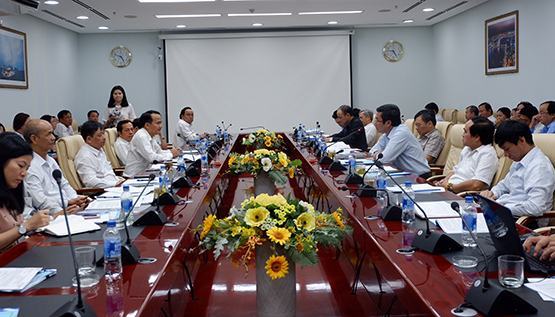 | Quang cảnh buổi làm việc của đoàn công tác liên ngành khảo sát kết quả thực hiện Nghị quyết 29 tại Đà Nẵng |