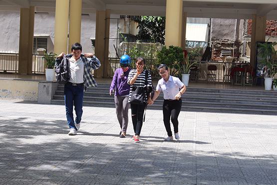 | Em Trần Thị Mỹ Hạnh – thí sinh khuyết tật dự thi tại điểm thi THPT Trần Phú |