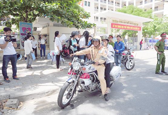 | Lực lượng CGST hỗ trợ đưa thí sinh về nhà sau môn thi đầu tiên |