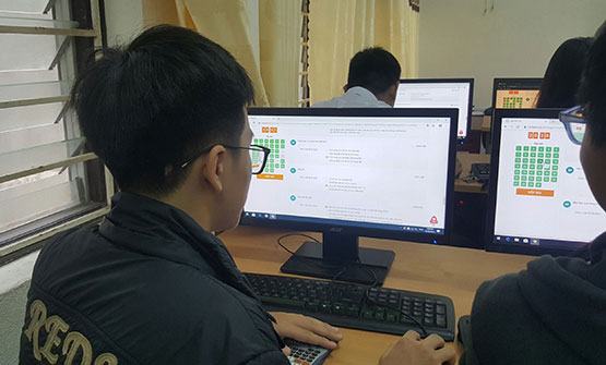 Nhằm tập cho học sinh làm quen với hình thức thi kiểm tra trên máy tính, Trường THPT Trần Phú (Đà Nẵng) vừa tổ chức tiết kiểm tra trắc nghiệm môn tin học trên máy tính cho học sinh 3 khối. Thầy Huỳnh Quang Vũ (giáo viên môn tin học của trường) cho biết tiết kiểm tra diễn ra trong 45 phút với 40 câu hỏi theo đúng cấu trúc đề của Bộ GD-ĐT với các cấp độ: nhận biết, thông hiểu, vận dụng và vận dụng cao. Để hạn chế tối đa các gian lận trong quá trình kiểm tra, ngoài sự giám sát của giáo viên coi thi, phòng máy tính được trang bị camera theo dõi, tất cả máy tính đã thoát các ứng dụng của mạng xã hội. Theo thầy Vũ, việc áp dụng thí điểm phần mềm thi kiểm tra trực tuyến này không chỉ tập dượt thói quen làm bài trên máy tính cho học sinh mà cả giáo viên cũng được giảm tải rất nhiều, nhất là khâu ra đề. Phần mềm được xây dựng theo form chuẩn của Bộ GD-ĐT nên giáo viên dễ tiếp cận để biên soạn đề, đảo mã đề. Việc chấm điểm được thực hiện trên máy tính và học sinh biết điểm ngay sau khi kết thúc bài kiểm tra nên giáo viên đỡ được công đoạn ngồi chấm bài thủ công khá mất thời gian.