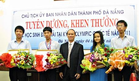 Sáng nay, 4/8, tại Đà Nẵng, Chủ tịch UBND TP Trần Văn Minh đã trao Bằng khen và tặng thưởng cho các nhóm giáo viên bồi dưỡng và 4 học sinh vừa đạt thành tích xuất sắc tại các kỳ thi Olympic quốc tế và châu Á năm học 2010- 2011.