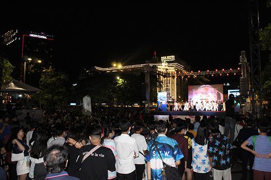 Đông đảo bạn trẻ đã đến từ sớm ngồi chờ chương trình nghệ thuật chào đón năm mới