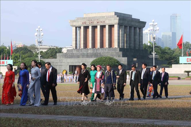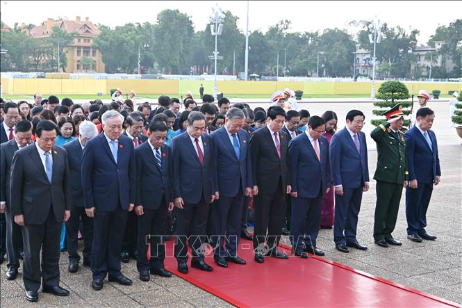 Các đồng chí lãnh đạo Đảng, Nhà nước cùng đại biểu Quốc hội đến đặt vòng hoa và vào Lăng viếng Chủ tịch Hồ Chí Minh
