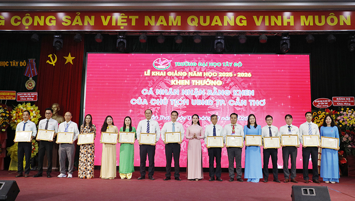Chủ tịch UBND TP.Cần Thơ tặng Bằng khen cho 2 Phó Hiệu trưởng trường: Ông Nguyễn Phước Quý Quang và ông Nguyễn Ngọc Minh, cùng 15 cá nhân đã có thành tích trong công tác năm học 2023 – 2024 và năm học 2024 – 2025; Tặng danh hiệu Tập thể lao động xuất sắc cho 14 tập thể đã có thành tích xuất sắc trong công tác năm học 2024 – 2025.