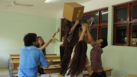 Sinh viên trường Đại Học Văn hóa đang tập luyện tiết mục