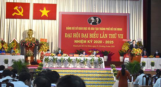 Nhiệm kỳ 2020-2025, GD TP.HCM phấn đấu đạt được 10 chỉ tiêu trọng tâm. Trong đó, đạt 300 phòng học/vạn dân trong độ tuổi đi học, 100% trường công lập đều có chi bộ độc lập, tỷ lệ đảng viên toàn ngành đạt 30% trở lên, kết nạp 25% đảng viên mới trong đó quan tâm kết nạp đảng viên học sinh, sinh viên… Đến năm 2025, tối thiểu 80% thủ tục hành chính đều được thực hiện theo dịch vụ công trực tuyến mức độ 3-4, kết nội cổng dịch vụ công trực tuyến quốc gia, TP; 100% đơn vị giáo dục kết nối hệ thóng cơ sở dữ liệu dùng chung của toàn ngành…; Mỗi quận huyện phấn đấu đạt 80% trường TH học 2 buổi/ ngày, 60% trường THCS và 80% trường THPT học 2 buổi/ ngày; 50% học sinh TP sau tốt nghiệp THPT đạt trình độ ngoại ngữ bậc 2 trở lên, 90% đạt trình độ ứng dụng CNTT cơ bản, 30% học sinh trình độ ngoại ngữ, tin học đạt chuẩn quốc tế…