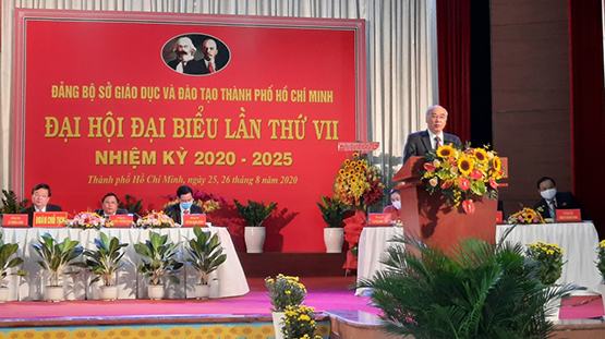 Phát biểu chỉ đạo tại đại hội, đồng chí Phan Nguyễn Như Khuê – Ủy viên Ban Thường vụ Thành ủy, Trưởng Ban Tuyên giáo Thành ủy TP.HCM ghi nhận, biểu dương những thành tích Đảng bộ, tập thể cán bộ, đảng viên, giáo viên, công chức, viên chức ngành GD-ĐT TP đã đạt được trong nhiệm kỳ 2015 – 2020 và thống nhất với mục tiêu, phương hướng, nhiệm vụ của Đảng bộ Sở nhiệm kỳ 2020 – 2025 đã xác định.