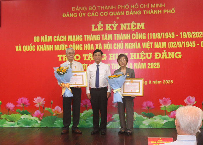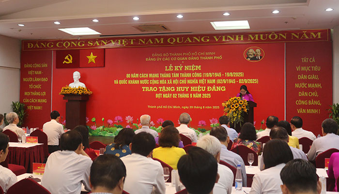 Sáng 29-8, Đảng ủy các cơ quan Đảng TP.HCM đã tổ chức Lễ kỷ niệm 80 năm Ngày Cách mạng tháng Tám thành công và Quốc khánh nước Cộng hòa xã hội chủ nghĩa Việt Nam, đồng thời trao huy hiệu Đảng đợt ngày 2-9.